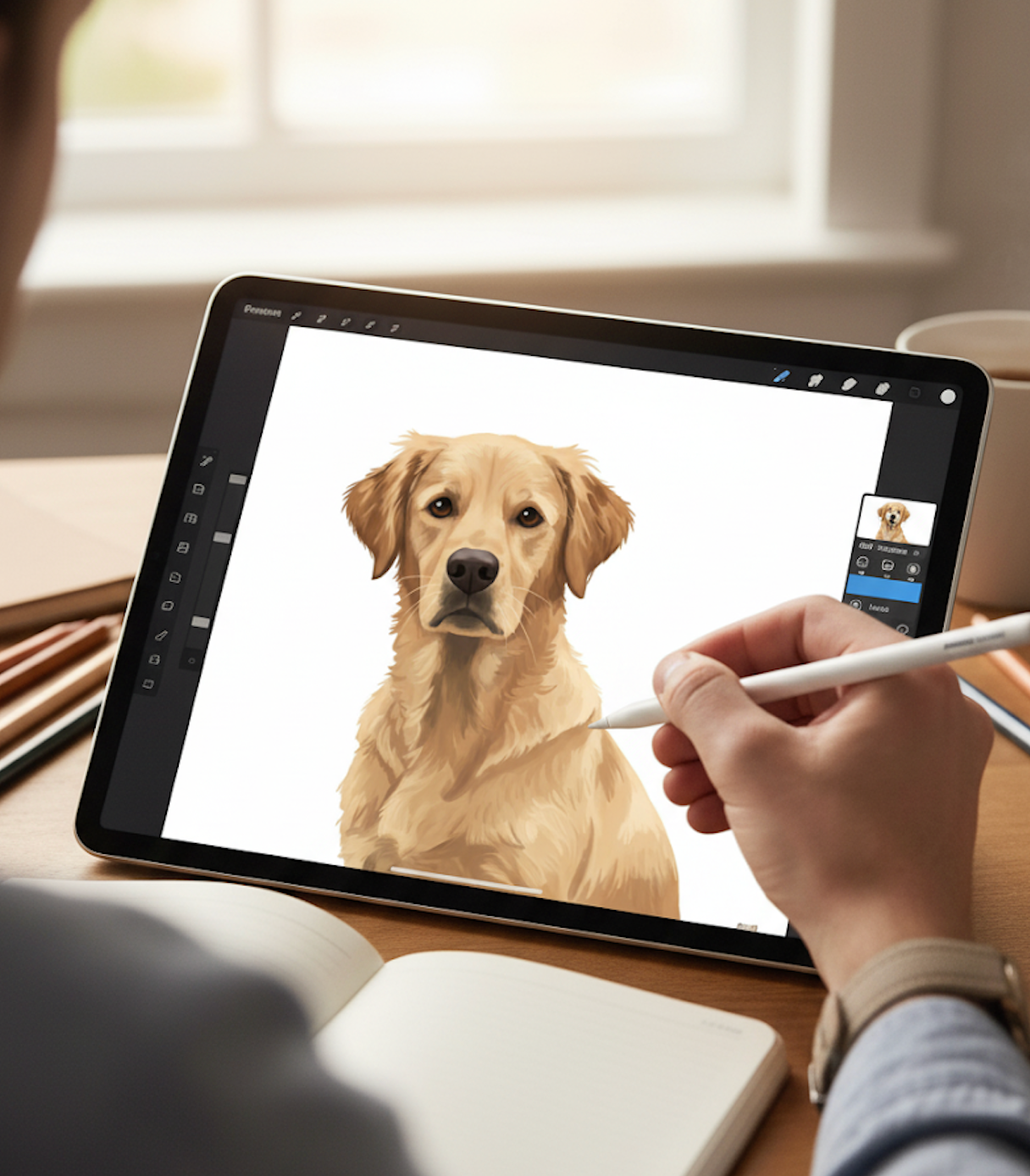 The portrait shows Luna’s calm eyes in a way a photo never could. It’s become the centerpiece of our living room.