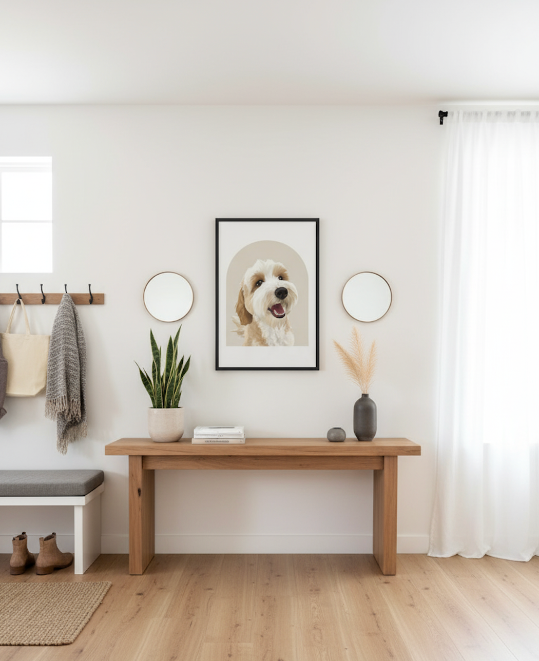 Turn your pet’s personality into timeless art. Each portrait is crafted in a modern, minimalist style with clean lines and muted tones. Printed on premium archival paper.